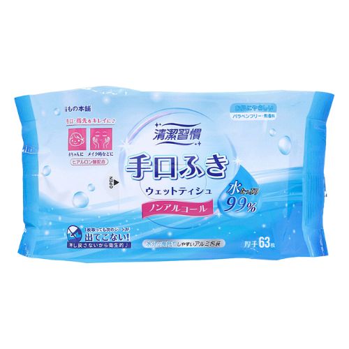 清潔習慣 手口ふき ウェットティシュ 厚手 63枚入